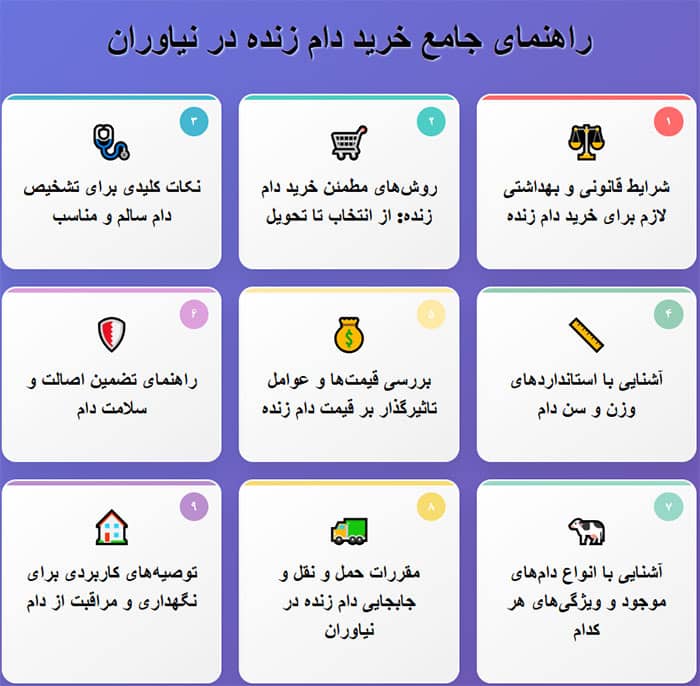 فروشندهای را انتخاب کنید که سالها در این کار بوده و مشتریانش از کیفیت دام ها رضایت دارند. پرسیدن از اهالی محلی یا کسانی که قبلاً از او خرید کردند، بهترین روش شناخت برای خرید در نیاوران است.